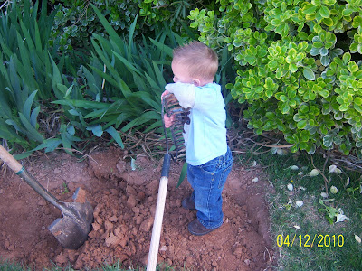 I dint realize all the work that goes into preparing a garden! I had to dig all the grass up, then get rid of about 2 inches of dirt... then breakup all the dirt!.... then add the soil in with it! It has taken a couple of days for all that!! Kody and the boys were helping one night after work! Hopefully we will get to plant tomorrow! Thanks Hun for all your help!